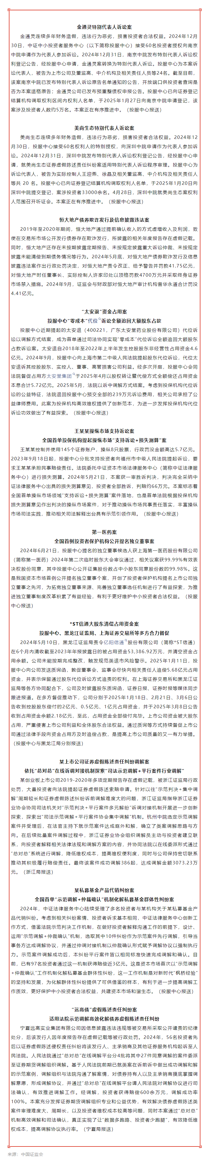 中国证监会发布年度评选十大投资者保护典型案例