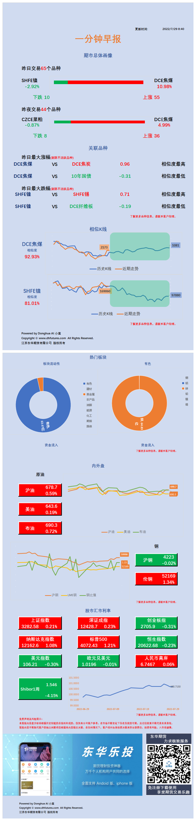 关联品种:昨日涨幅最大的焦煤与焦炭有较高的相关性,昨日跌幅最大的沪镍与沪锡有较高的相关性。