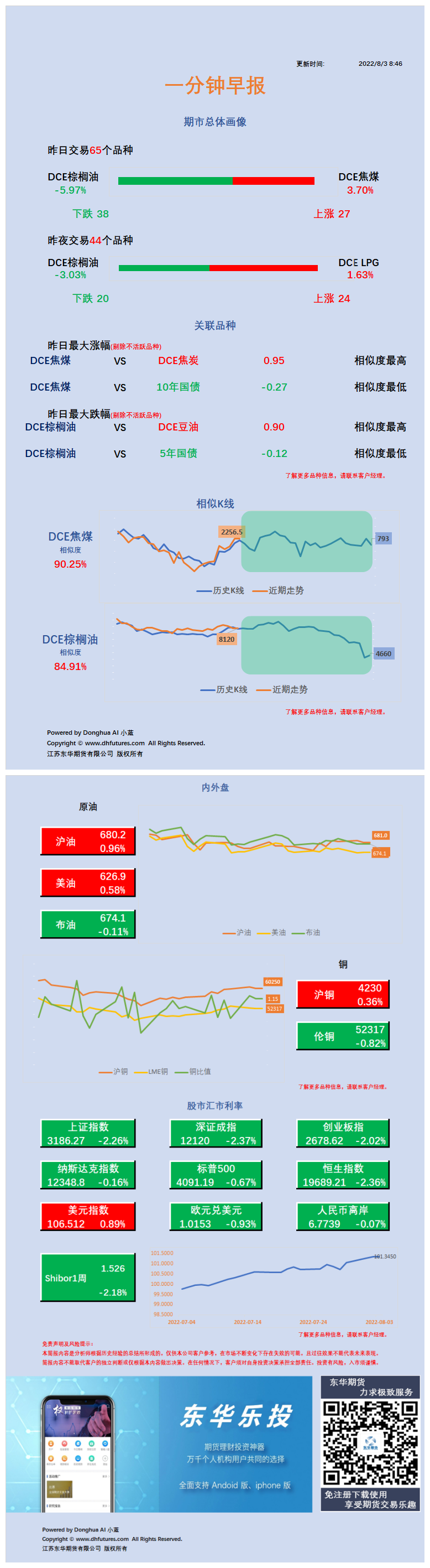 关联品种:昨日涨幅最大的焦煤与焦炭有较高的相关性,昨日跌幅最大的棕榈油与豆油有较高的相关性。