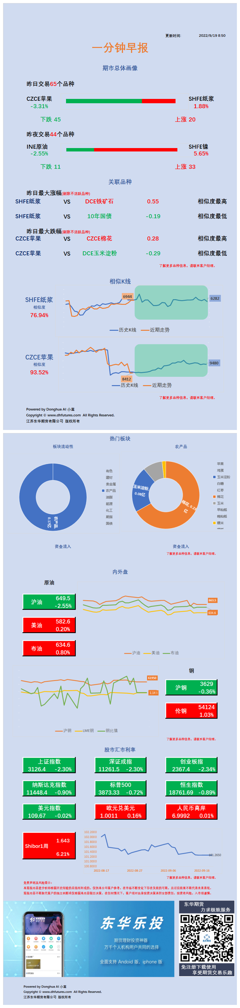 关联品种:昨日涨幅最大的纸浆与铁矿石有较高的相关性,昨日涨幅最大的苹果与棉花有较高的相关性。