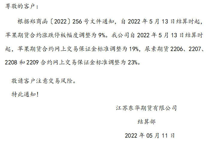 关于调整部分期货合约交易保证金标准和涨跌停板幅度的通知