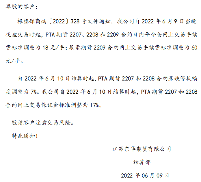 关于2207合约临近交割月持仓调整通知
