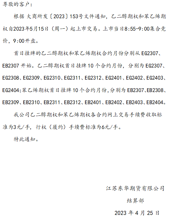 关于乙二醇期权和苯乙烯期权上市交易有关事项的通知