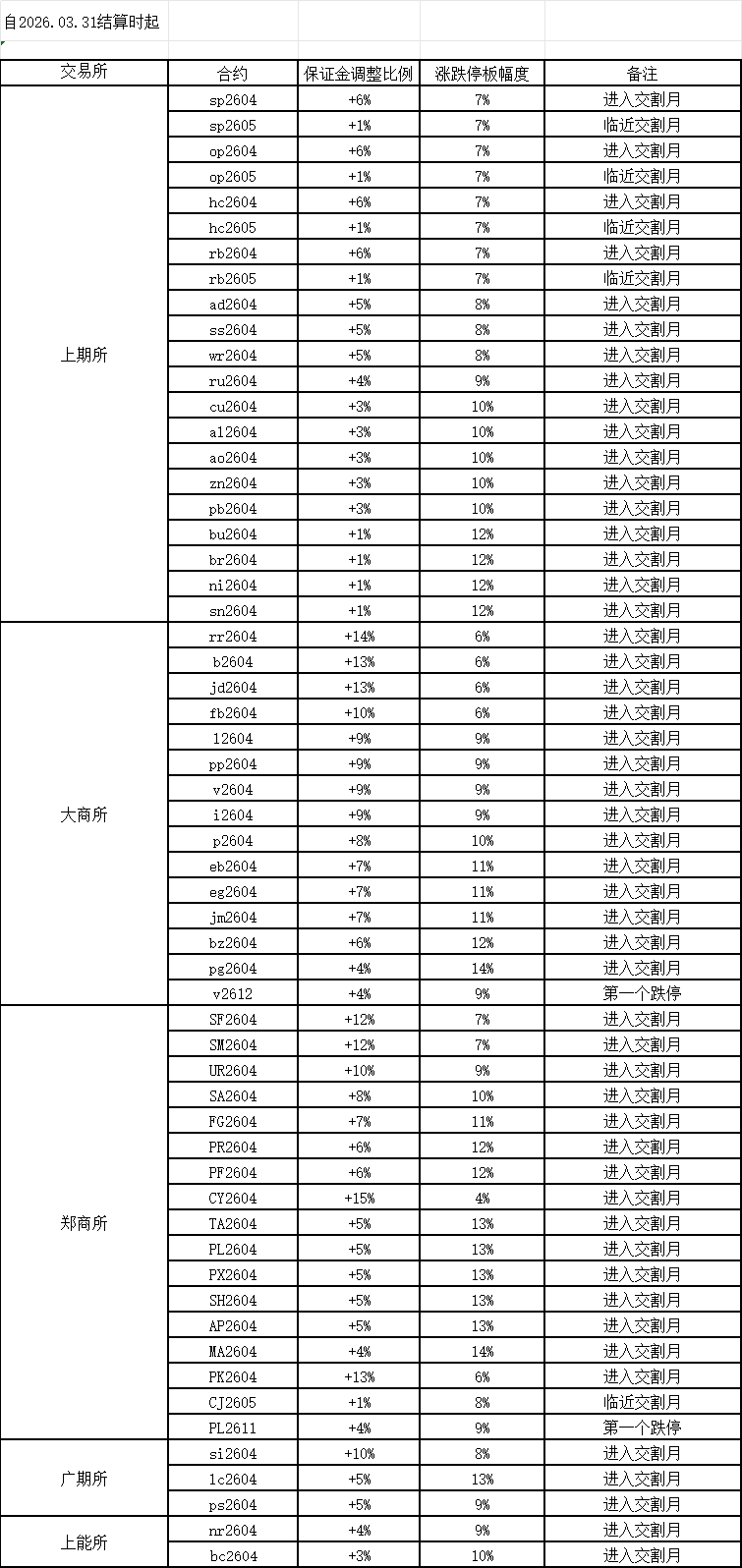 交易提示--2026.04.01保证金