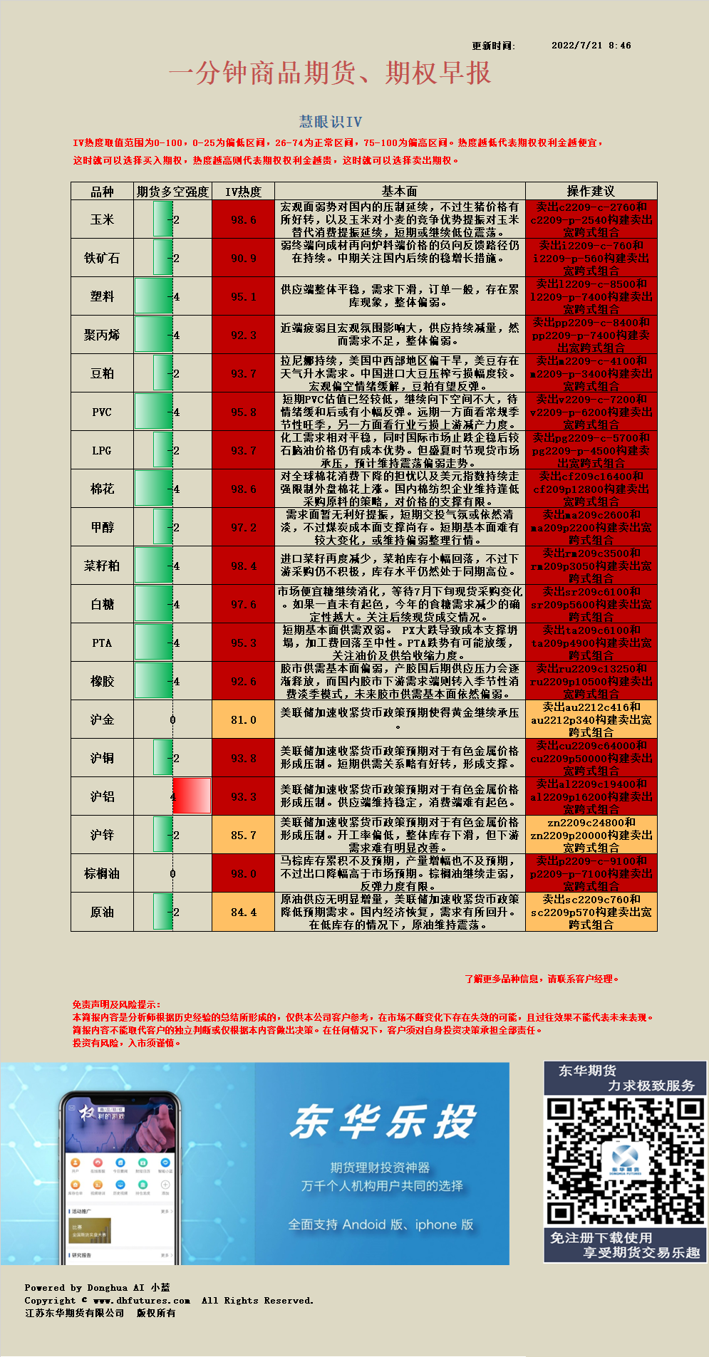 商品期权一分钟早报丨2022/7/21