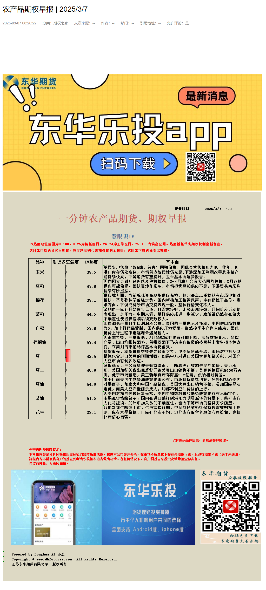 东华农产品期权早报