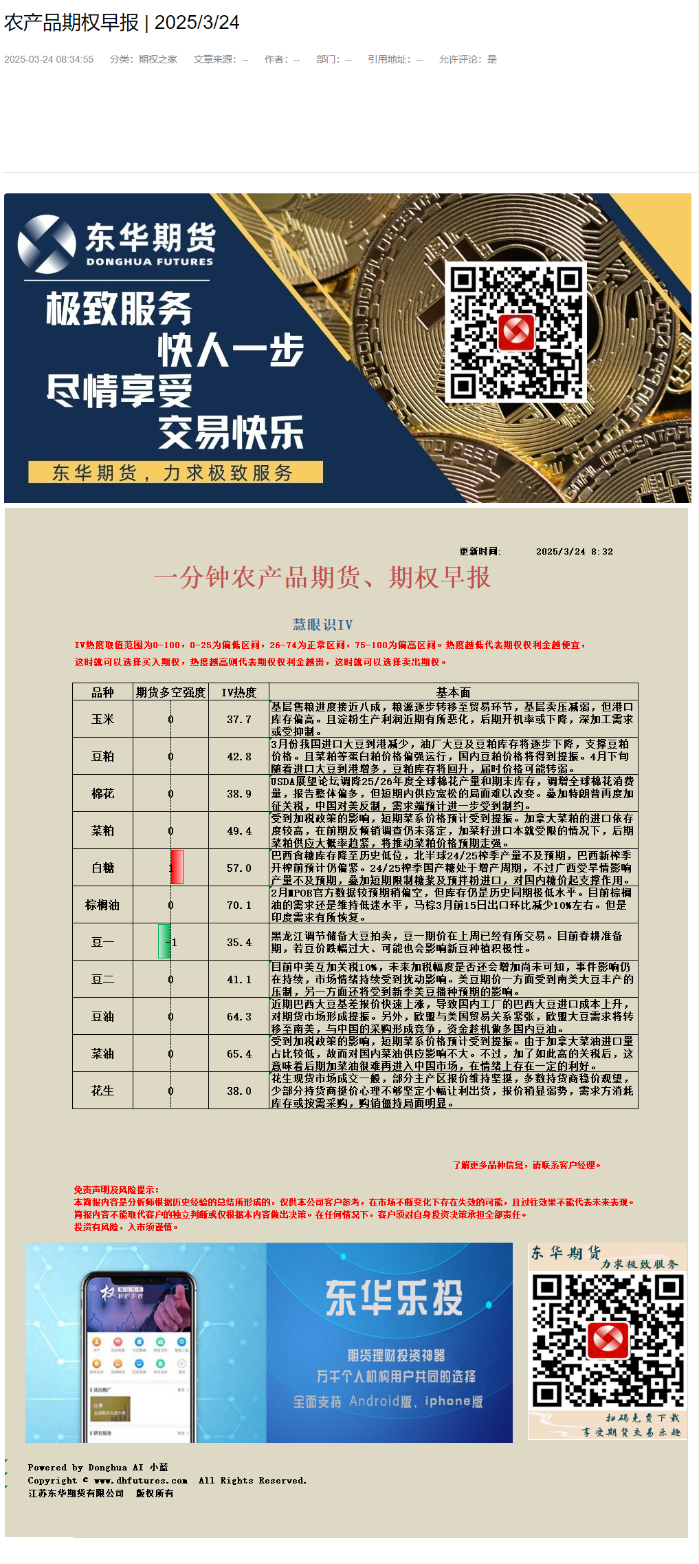 东华农产品期权早报