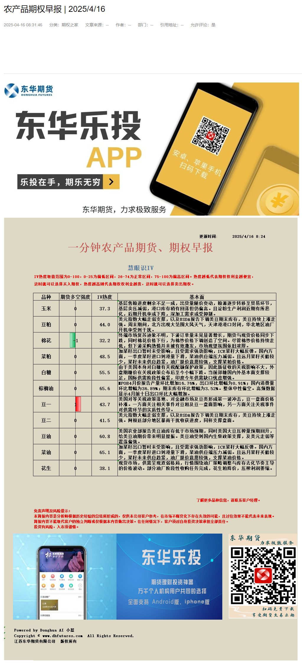 东华农产品期权早报